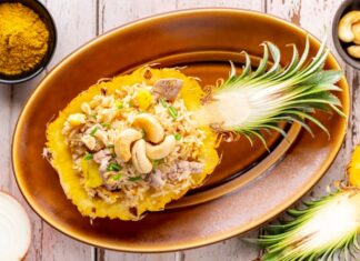 Ананасовый салат с курицей и чесноком